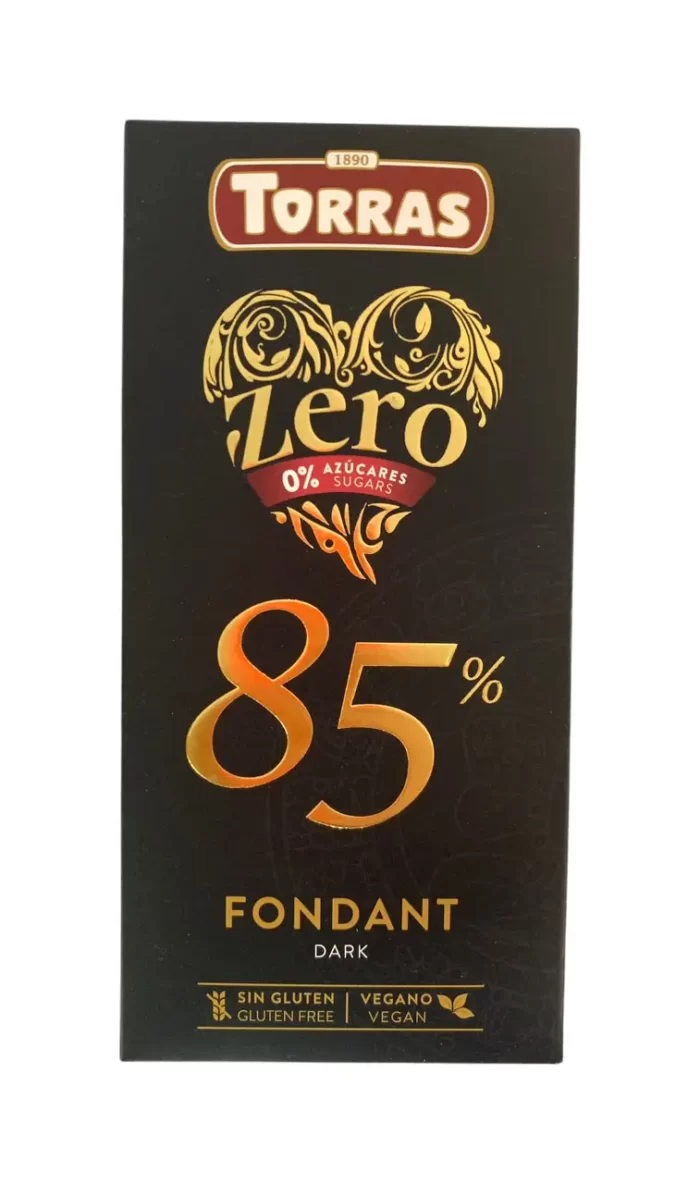 Шоколад TORRAS Zero 85%, екстра-чорний БЕЗ ЦУКРУ та глютену, 100 г
