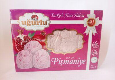 Пішмані — це турецька солодкість, що нагадує по текстурі та смаку цукрову вату, але має більш насичений смак. Секрет її унікальності полягає у технології приготування: найтонші волокна з борошна, масла та карамелізованого цукру переплітаються, створюючи "хмаркову" структуру, яка тане в роті.