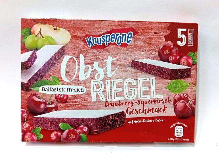 Батончик пастила Knusperone Obst Riegel з журавлиною та вишнею, 150 г.