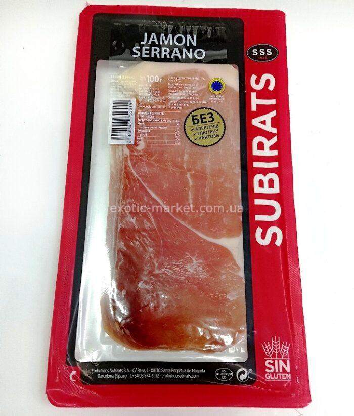 Хамон Subirats Jamon Serrano – справжній іспанський делікатес, що є нарізаним тонкими скибочками сиров’ялений свинячий окіст. Хамон має дуже приємний аромат, ніжну текстуру та неперевершений смак. Скибочки хамона мають гарний бордово-коричневий колір, з вкрапленнями помітних світлих жирових прожилок. Це чудовий подарунок для будь-якого гурмана, а у поєднанні з гарним вином – чудове частування на святковий стіл.
