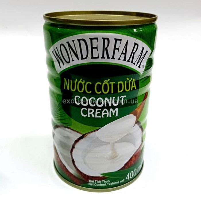 Кокосовий Крем натуральний Wonderfarm Coconut Cream 400 мл. Кокосовий крем володіє ніжним чудовим смаком і ароматом натуральних кокосів. Крім додавання в супи і десерти, Ви можете пом’якшити гостроту страви за допомогою кокосового крему. Кокосові крем або вершки – незамінний компонент в’єтнамської та тайської кухні. Чудова ідея для заміни вершків у чаї, каві або цикорії.