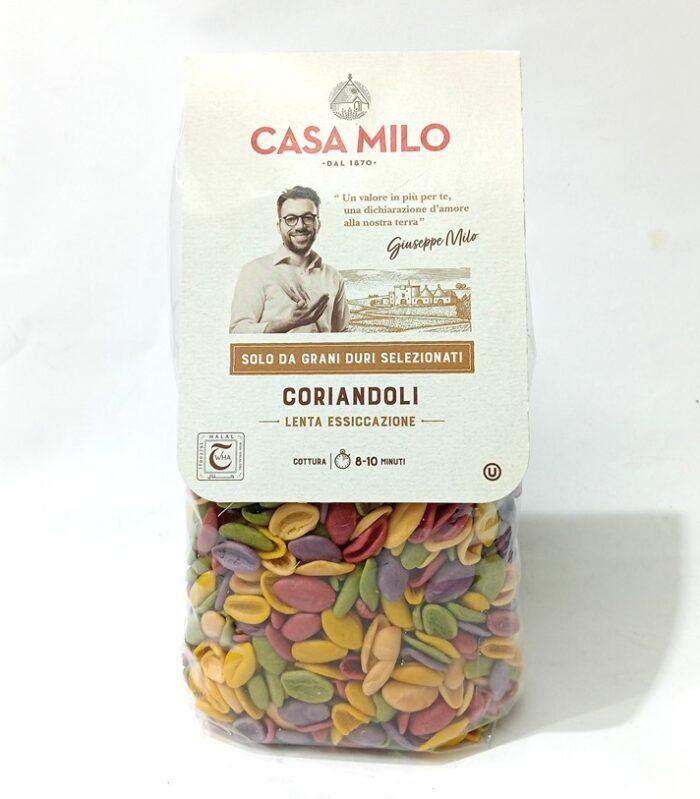 Макарони триколор CASA MILO — це різнобарвні італійські макарони що схожі на осінні листя. Щоб надати макаронам яскравого кольору, у тісто додали сушений базилік, томати, шпинат і буряк, трави та спеції — так вийшли червоні, жовті, жовтогарячі, зелені та фіолетові «листя». Пасту такої форми подають із неоднорідними овочевими та м’ясними соусами. Також вона матиме гарний вигляд у салаті або супі.