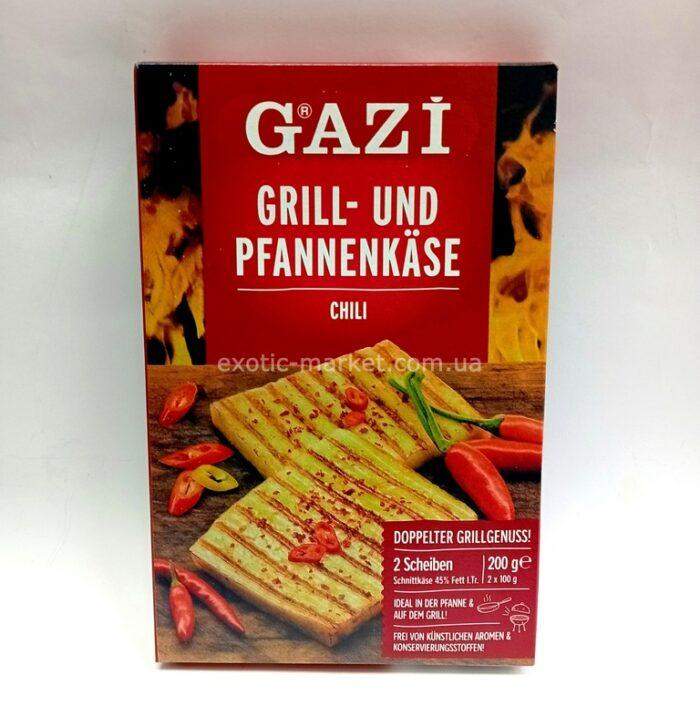 Сир Gazi з пікантним перцем для гриля. Підходить для приготування на гриль сковороді, в пакованні 2 порції по 100 грамів. Сир молода бринза, солонуватий. Прекрасно поєднується з медом або моштардою (гірчиця з фруктами). Смачне поєднання солонуватого сиру і пікантного перцю.